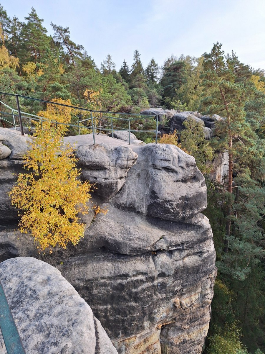 Aby nevznikla mýlka, že manžel dobrovolně chodí po kopcích a kvůli východu slunce vstává v půl 6 ráno, abych si svůj svátek užila dle svých představ. To bylo kvůli kolegovi, který s partou kamarádů šel Zlatou stezkou Českým rájem z Jičína do Boleslavi. Přidali jsme se, aspoň tenhle úsek na Malou Skálu a pozdější autobus nejel. Než dorazili, stihli jsme ještě vyhlídku na skokanských můstcích
