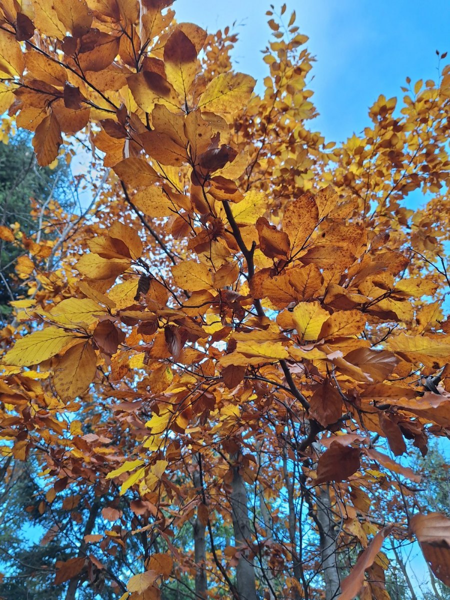 Chtěla jsem do Krkonoš a skončila jsem v Jizerkách a v Polsku. Teď už vůbec nemůžu říkat, že nikam nechodíme. Krásných 20 kilometrů v mlze bylo takových melancholických a mlhavých. Vůně a podzimní barvy bukového listí, Cimrmanovský Bukovec.