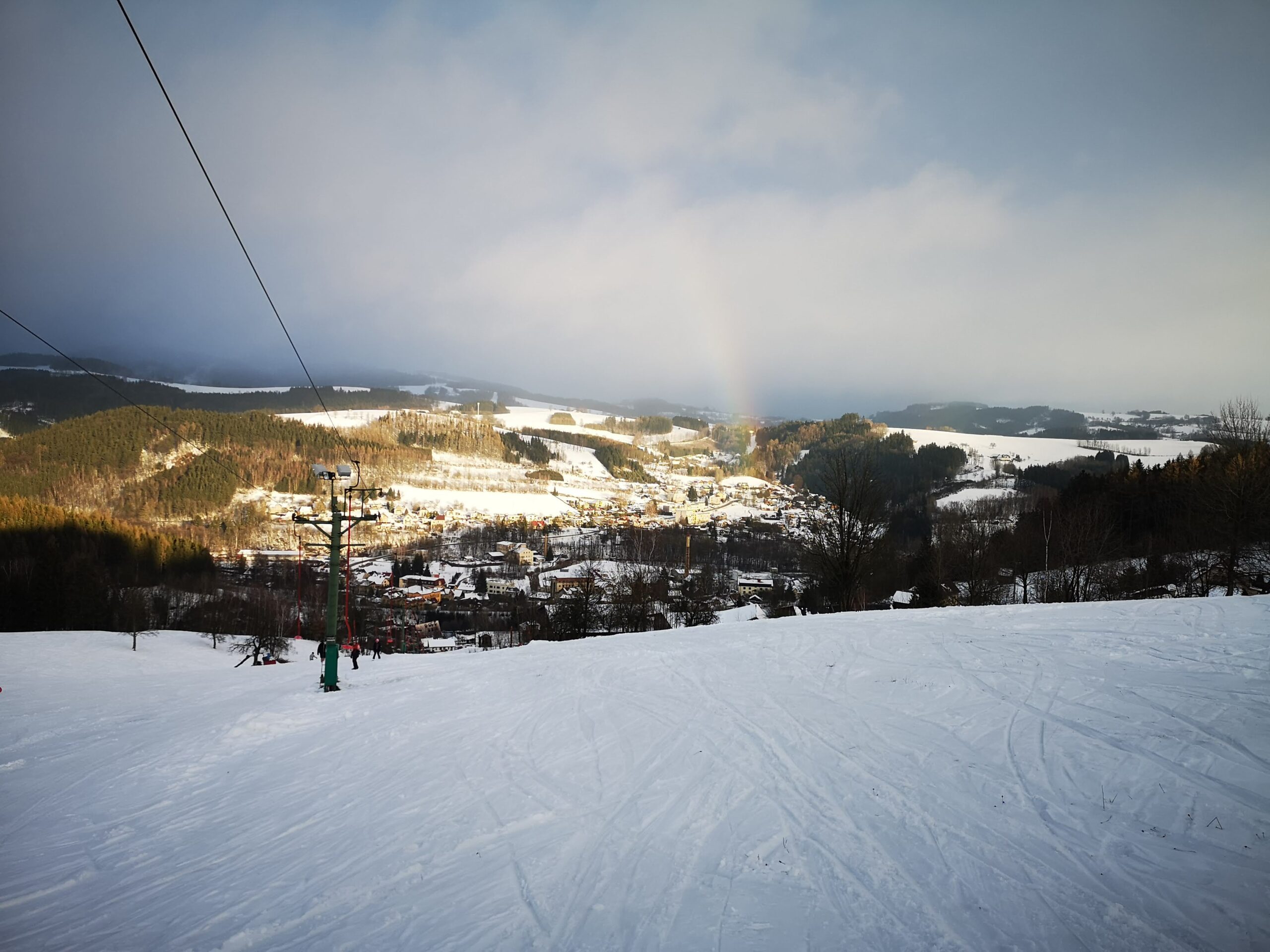 Zato nadšené dítě by s kamarádem jezdilo od rána do večera, skáčou na skokánkách a jsou samostatný. Ten si tu celozimní permanentku fakt užije. Nakonec to nebylo špatné ani v nedělním mrholení. Po něm přišlo slunce a duha. A i když z lyží nejsem nadšená, beru to tak, že mám pohyb. I to může být cíl.