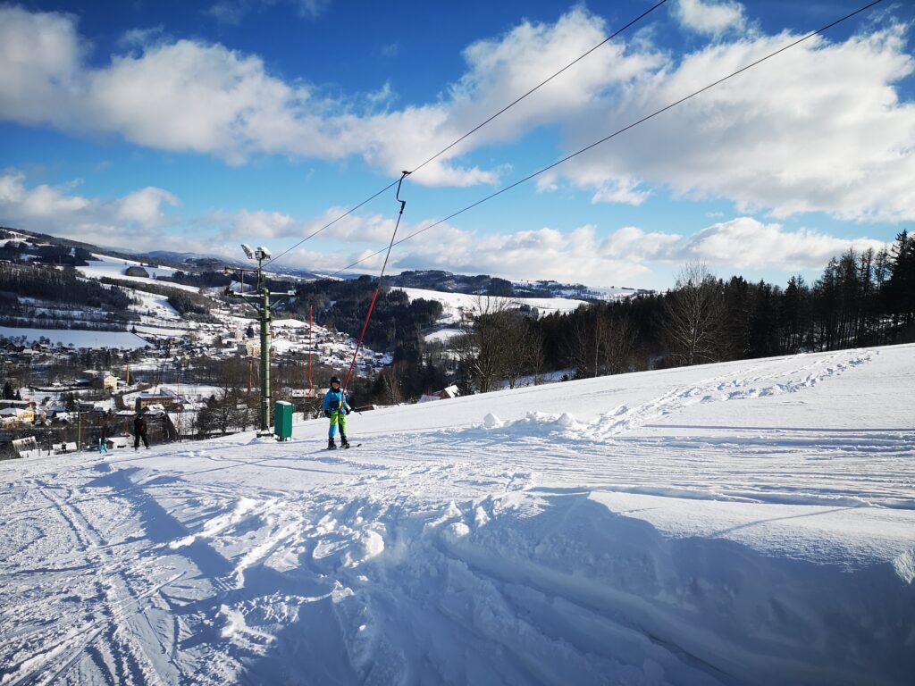 Dítě by pořád koukalo do obrazovky. Naštěstí jezdí vlek, tak vyrážíme na svah. Zatímco děti z města by lyžovaly pořád, naše to vůbec nebaví. Prudil si sjede povinných 5 jízd, a pak už se tam jen tak válí. Hlásí, že na lyžák se školou určitě nepůjde, že tam nikdo z jeho třídy nejde. Píšu mamince jeho nejlepší kamarádky, jestli jde. Jo, má to stejný. Nechce, ale musí.